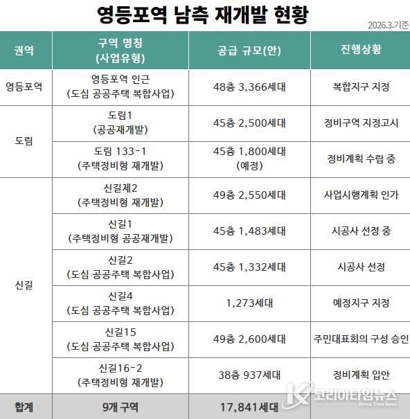 최호권 영등포구청장은 “영등포역 남측 일대의 변화는 낙후된 도시 이미지를 벗고 서울의 미래를 상징하는 명품 주거지로 거듭나는 과정”이라며 “1만 8천 세대의 대규모 정비사업이 차질 없이 진행될 수 있도록 모든 행정력을 집중하겠다”라고 전했다.