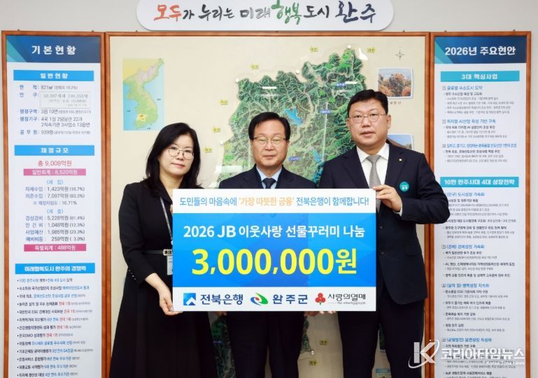한편, 전북은행은 매년 완주군에 선물꾸러미와 방한 키트, 보건 위생용품 등을 꾸준히 후원하며 지역사회 복지 증진을 위한 든든한 후원자 역할을 수행하고 있다.