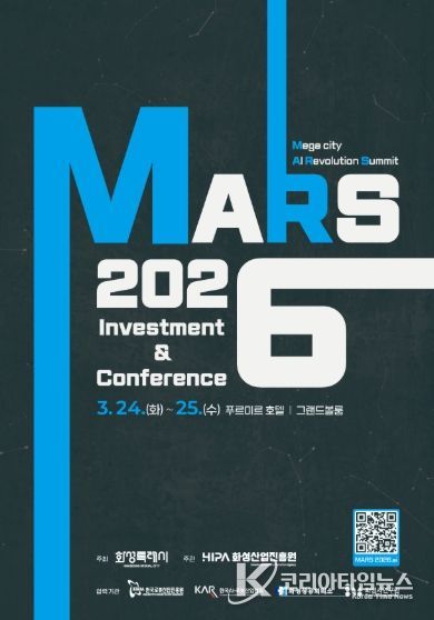 코리아타임뉴스 경제팀 | 화성특례시가 주최하고 화성산업진흥원이 주관하는 ‘MARS 2026 투자유치&컨퍼런스’가 오는 3월 24일부터 이틀간 화성 푸르미르 호텔에서 개최된다.