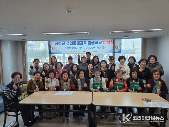 코리아타임뉴스 충북취재본부 | 충북 진천군은 진천읍 지안스로가2차 아파트 경로당에서 ‘찾아가는 성인 문해교육 마을 학습장 글샘학교 입학식’을 개최했다고 17일 밝혔다.