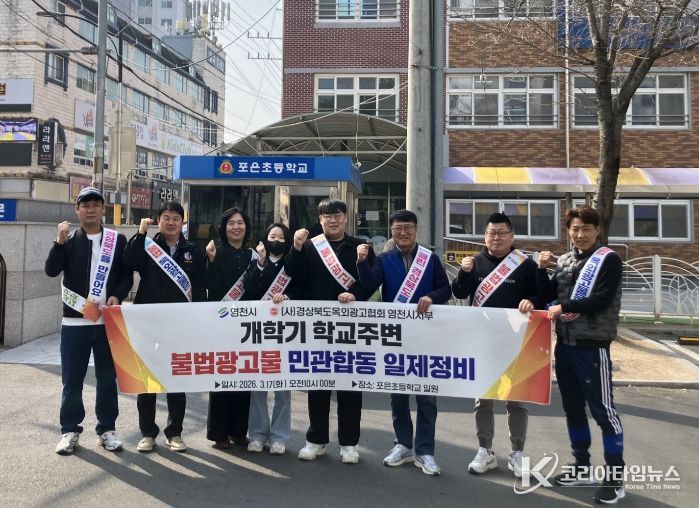 코리아타임뉴스 노승선 기자 | 영천시는 초등학교·유치원 개학기를 맞아, 안전한 통학환경 조성을 위해 이달 27일까지 ‘불법 광고물 일제 정비’를 실시한다고 밝혔다.