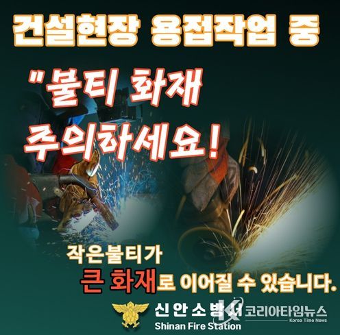 코리아타임뉴스 김태훈 기자 | 신안소방서(서장 고상민)는 건설현장에서 실시되는 용접·절단 작업 중 발생하는 불티로 인한 화재 위험이 높다며 각별한 주의를 당부했다.