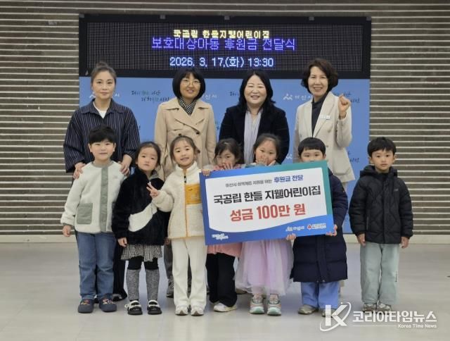 코리아타임뉴스 김택호 기자 | 아산시는 국공립 한들지웰어린이집(원장 김미정)이 부모님의 후원을 통해 마련한 수익금 100만 원을 관내 보호대상 아동의 자립 지원을 위해 사용해 달라며 기탁했다고 밝혔다.