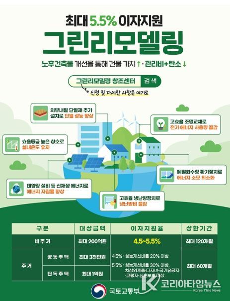 코리아타임뉴스 윤광희 기자 | ■ 그린리모델링, 최대 5.5% 이자 지원