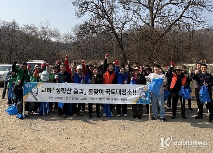 코리아타임뉴스 윤광희 기자 | 파주시 교하동은 지난 13일, 본격적인 행락철을 앞두고 교하 ‘심학산 줍깅’봄맞이 국토 대청소를 실시했다.