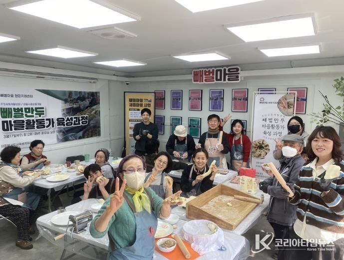 코리아타임뉴스 기동취재팀 | 의정부시는 3월 17일 빼벌새뜰마을사업(도시취약지역 생활여건 개조사업)의 일환으로 추진하는 주민공동체 활성화 프로그램 ‘빼벌만두 마을활동가 육성 과정’ 개강식을 빼벌마을 현장지원센터에서 개최했다.