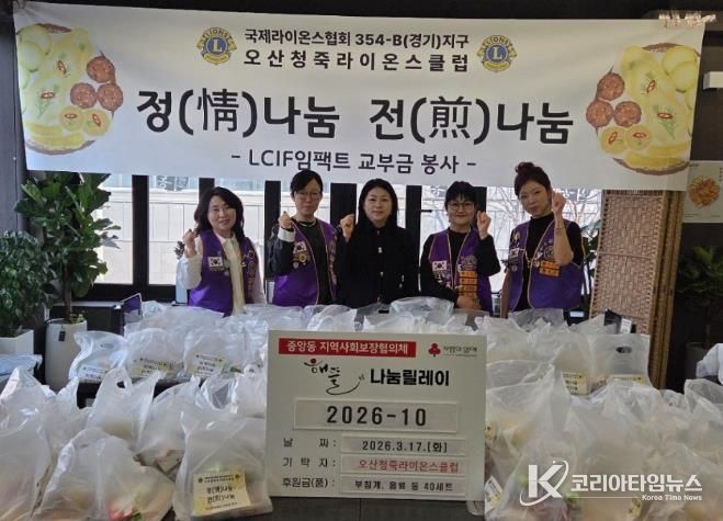 코리아타임뉴스 윤광희 기자 | 오산시 중앙동 행정복지센터는 지난 17일 청죽라이온스클럽이 관내 취약계층을 위한 ‘사랑의 전 나눔’을 실천했다고 밝혔다.