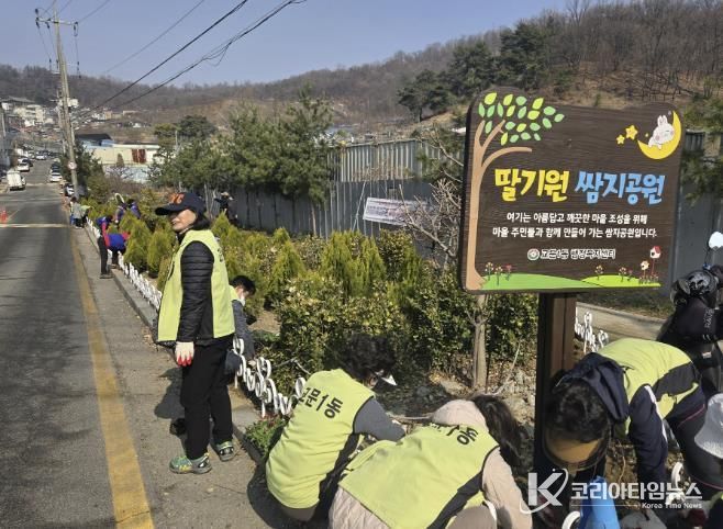 이번 활동에는 교문1동 주민자치위원회, 통장협의회, 새마을단체, 바르게살기위원회, 적십자봉사회, 지역사회보장협의체 등 기간단체 회원을 비롯해 경로당 회원, 원불교 신도, 딸기원 시립어린이집, 동 직원 등 약 120명이 참여했다. 참여자들은 펜지, 비올라, 마가렛, 데이지 등 봄꽃 5,000본을 정성껏 심으며 마을 곳곳에 봄의 활기를 더했다.
