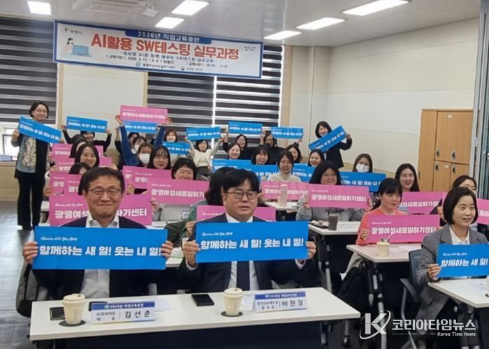 코리아타임뉴스 경기취재본부 | 광명시 여성새로일하기센터는 지난 17일 ‘2026년 직업교육훈련 인공지능(AI) 활용 소프트웨어(SW) 테스팅 실무과정’ 개강식을 열고 교육을 시작했다.