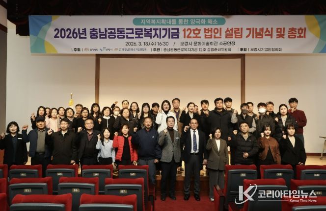 코리아타임뉴스 충남취재본부 | 보령시는 18일 보령문화예술회관 소공연장에서 충청남도와 보령시, 관내 중소기업 노·사 관계자 등 60여 명이 참석한 가운데 ‘충남공동근로복지기금 12호’ 법인 설립총회를 개최했다고 밝혔다.