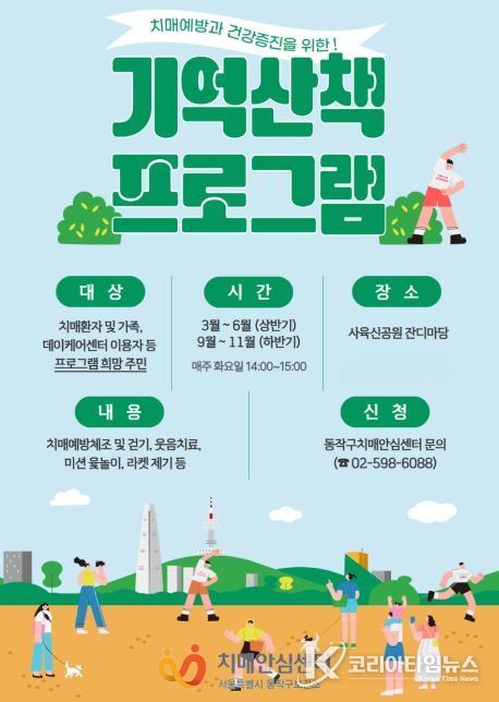 코리아타임뉴스 기동취재팀 | 동작구는 구민들의 치매 예방과 건강증진을 위해 걷기 기반 통합 건강관리 프로젝트 ‘기억산책’을 운영한다고 밝혔다.