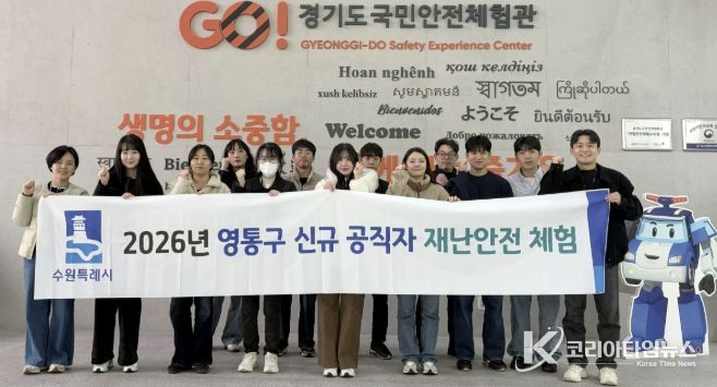 코리아타임뉴스 사회팀 | 수원시 영통구는 지난 18일, 경기도 국민안전체험관에서 신규 공직자들을 대상으로 재난·안전 체험교육을 실시했다. 이번 교육은 신규 공직자들의 재난 대응 역량을 높이고 현장 중심의 안전의식을 강화하기 위해 추진됐다.