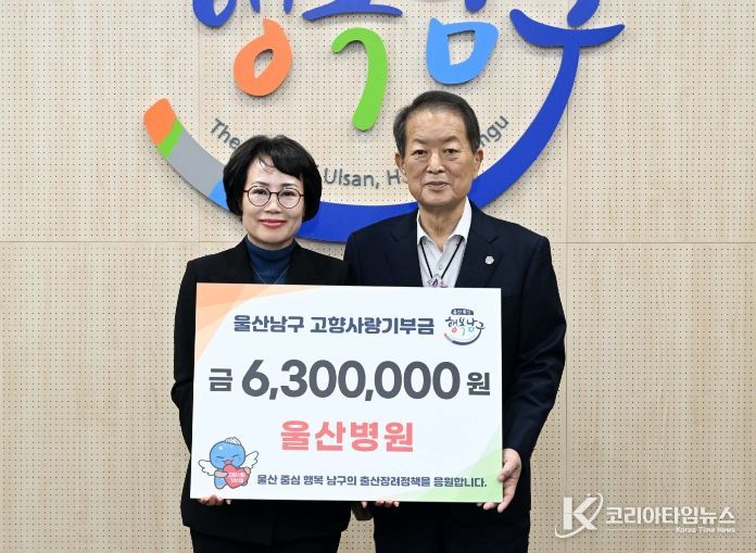 코리아타임뉴스 노승선 기자 | 울산 남구는 (의)혜명심의료재단 울산병원(이사장 임성현)이 고향사랑기부금 630만원을 기탁했다고 19일 밝혔다.