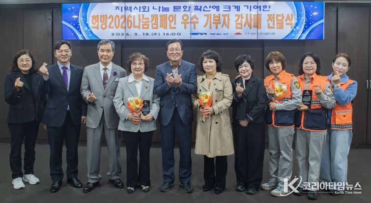 코리아타임뉴스 이아름 기자 | 부산 영도구는 부산사회복지공동모금회(회장 이수태)와 공동으로 지난 3월 18일, 구청 대회의실에서 '희망2026 나눔캠페인 우수기부자 감사패 전달식을 개최했다고 밝혔다.