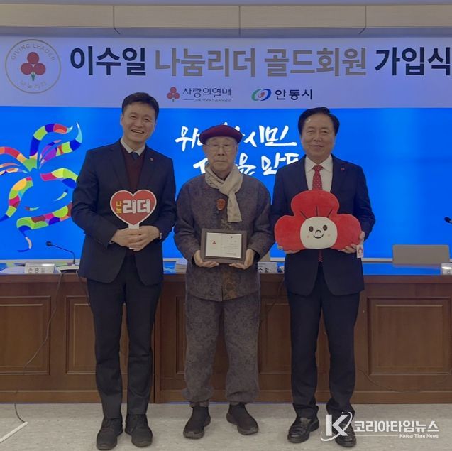 코리아타임뉴스 노승선 기자 | 안동시는 18일 웅부관 소통실에서 전 안동로타리클럽 이수일 회장에게 경북사랑의열매 나눔리더(골드) 가입 인증패를 전달했다.