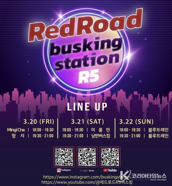 3월 20일부터 22일까지 레드로드 R5 버스킹존에서는 오후 6시부터 9시 보컬과 댄스 등 다채로운 장르의 공연이 시간대별로 펼쳐져 주말 내내 방문객의 발길을 사로잡을 예정이다.