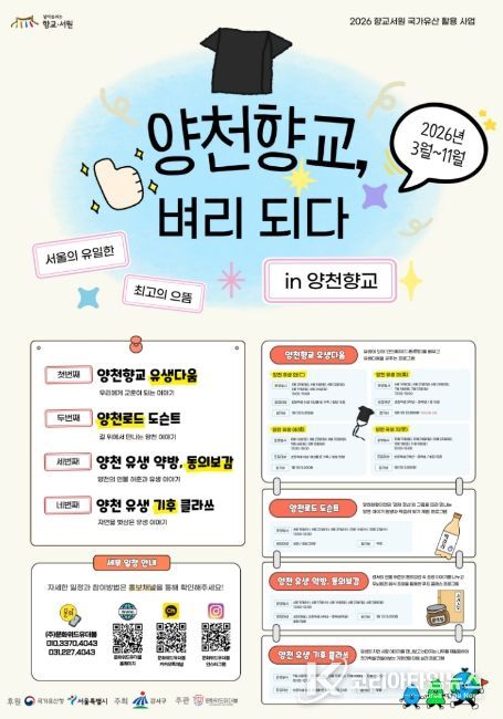 코리아타임뉴스 윤광희 기자 | 서울 강서구는 서울 유일의 향교인 양천향교에서 3월부터 11월까지 ‘2026년 향교·서원 국가 유산 활용사업’을 진행한다.
