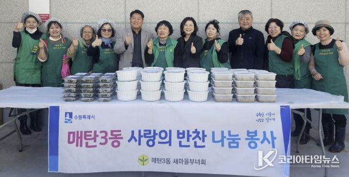 코리아타임뉴스 사회팀 | 영통구 매탄3동은 지난 19일 매탄3동 새마을부녀회가 ‘사랑의 반찬 나눔’ 행사를 진행했다고 밝혔다.