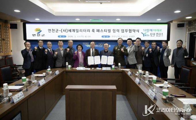 코리아타임뉴스 윤광희 기자 | 연천군은 지난 19일 군청 본관 2층 상황실에서 사단법인 세계밀리터리 룩 페스티벌과 군 문화 협력 강화를 위한 업무협약(MOU)을 체결했다.