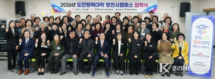 코리아타임뉴스 노승선 기자 | 영천시는 20일 평생학습관 회의실에서 신입생과 관계자 등 60여 명이 참석한 가운데 ‘2026년 경북도민행복대학 영천캠퍼스’ 입학식을 개최하고, 새로운 배움의 장을 열었다고 밝혔다.