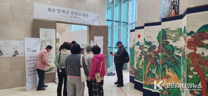 광양매화문화관 기획전시실에서는 광양 출신 민화 작가 엄재권 화백의 특별전이 열리고 있다. 엄 화백은 한중 정상회담 당시 중국 국가주석에게 전달된 민화 ‘기린도’를 제작한 작가다.