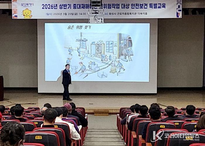 코리아타임뉴스 사회팀 | 화성특례시가 20일 고위험작업 담당자와 용역·위탁 사업장 근로자를 대상으로 ‘2026년 상반기 중대산업재해 예방 안전보건 특별교육’을 실시했다.