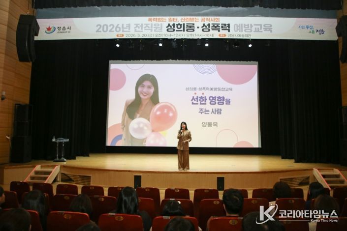 코리아타임뉴스 김태훈 기자 | 정읍시가 건강하고 안전한 공직 문화 조성을 위해 20일 정읍사예술회관에서 6급 이하 전 직원을 대상으로 ‘성희롱·성폭력 예방 교육’을 실시했다.