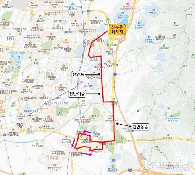 시는 등·하교 시간을 고려해 배차를 확정했으며, 천안동중·천안여중·천안중학교 등 주요 학교 인근의 천안대로와 충절로를 경유하도록 설계해 학생들의 접근성을 높였다.