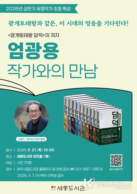 코리아타임뉴스 기동취재팀 | 여주시는 오는 5월 21일 오후 7시 세종도서관에서 대하소설 '광개토태왕 담덕'의 저자, 엄광용 작가를 초청하여 작품과 작가의 세계관에 대해 시민들과 이야기하는 ‘엄광용 작가와의 만남’을 운영한다.