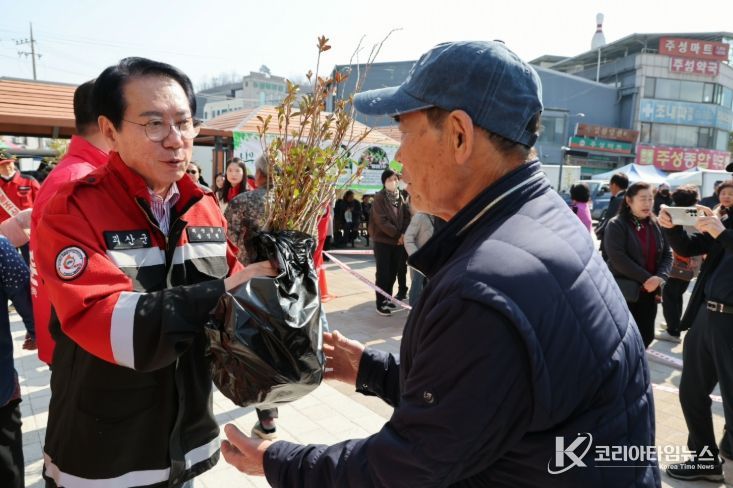 코리아타임뉴스 박찬식 기자 | 충북 괴산군은 23일 제81회 식목일을 앞두고 산림보호에 대한 군민들의 의식을 향상하기 위해 나무 나누어주기 행사를 개최했다.