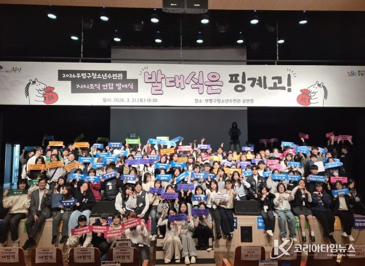 코리아타임뉴스 사회팀 | 부평구청소년수련관은 지난 21일 오후 1시 30분 수련관 4층 공연장에서 2026년 자치조직 연합 발대식 ‘발대식은 핑계고!’를 성황리에 개최했다.
