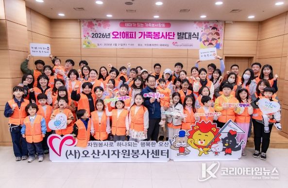 코리아타임뉴스 기동취재팀 | (사)오산시자원봉사센터는 지난 21일 오산시자원봉사센터 1층 대회의실에서 가족 단위 나눔 문화 확산을 위한 ‘2026년 제18기 오! 해피가족봉사단’ 발대식을 개최했다고 밝혔다.