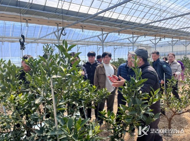 오후에는 관내 만감류 재배 농가 8개소를 순회하며 현장 컨설팅을 실시했다. 각 농가별 재배환경과 생육 상태를 직접 점검하고, 수세 불균형 해소, 착과 관리, 시설 내 환경 조절 등 농가별 문제점에 대한 맞춤형 기술 지도가 이뤄졌다.