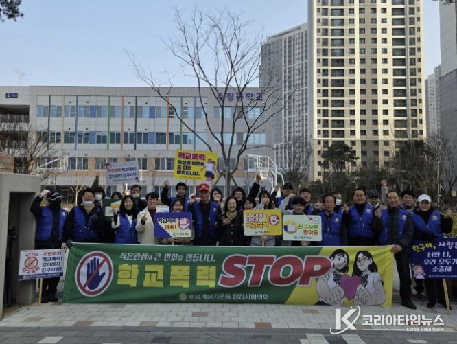 코리아타임뉴스 김택호 기자 | 당진시는 지난 23일 바르게살기운동 당진시협의회가 수청중학교에서 등교하는 학생들을 대상으로 ‘2026년 찾아가는 학교폭력 예방 캠페인’을 전개했다고 밝혔다.