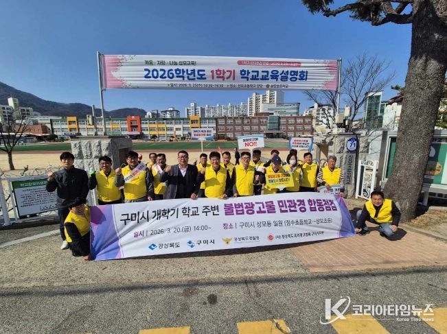 코리아타임뉴스 노승선 기자 | 구미시는 개학기를 맞아 (사)경북옥외광고협회 구미시지부(지부장 정원표)와 함께 초등학교 주변 불법광고물에 대한 일제 정비에 나섰다. 학생들의 안전한 통학환경을 확보하고 도시 경관을 개선하기 위한 조치다.