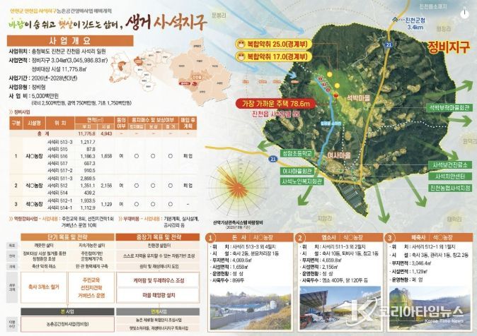코리아타임뉴스 충북취재본부 | 충북 진천군은 농림축산식품부가 주관한 ‘2026년 농촌공간정비사업’ 공모에서 진천읍 사석지구가 신규 사업 대상지로 최종 선정됐다고 24일 밝혔다.