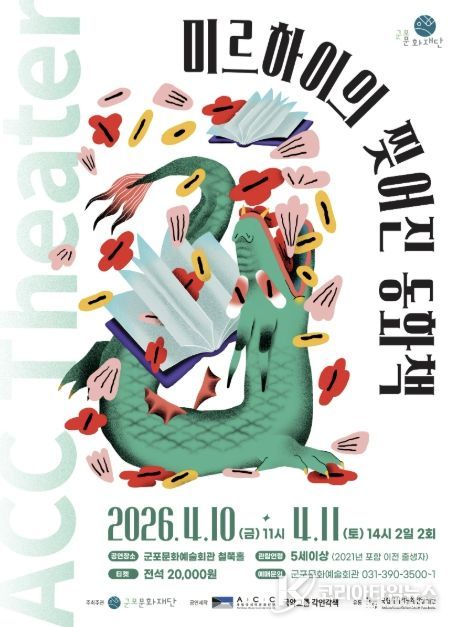 코리아타임뉴스 이아름 기자 | 군포문화재단은 어린이와 가족이 함께 관람할 수 있는 공연 '미르하이의 찢어진 동화책'을 4월 10일~11일 군포문화예술회관 철쭉홀에서 개최한다고 밝혔다. 이번 공연은 2026 국립아시아문화전당재단 어린이 공연 유통 공모사업의 일환으로, 국립아시아문화전당(ACC) 창·제작 어린이 공연을 지역에 소개하기 위해 마련됐다.