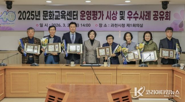 코리아타임뉴스 사회팀 | 과천시는 지난 23일 시청 제1회의실에서 7개 동 주민문화교육센터 운영평가 결과 우수 센터를 시상하고, 각 동 주민자치위원회 우수 사례를 공유하는 자리를 마련했다.