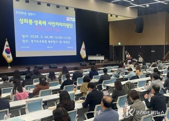 코리아타임뉴스 사회팀 | 경기도교육청이 24일 북부청사에서 성희롱·성폭력 사안 처리의 현장 대응력과 전문성 강화를 위해 ‘2026 상반기 성희롱·성폭력 사안처리지원단 역량 강화 연수’를 운영했다.