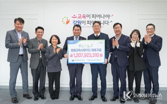 코리아타임뉴스 사회팀 | 강원특별자치도교육청은 24일, NH농협은행 강원본부(본부장 이명호)로부터 강원교육사랑카드 제휴기금을 전달받았다.
