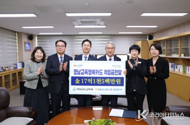 코리아타임뉴스 사회팀 | 경상남도교육청은 24일 NH농협은행으로부터 ‘경남교육행복카드’ 사용으로 적립된 포인트 17억 1,585만 6,930원을 전달받았다.