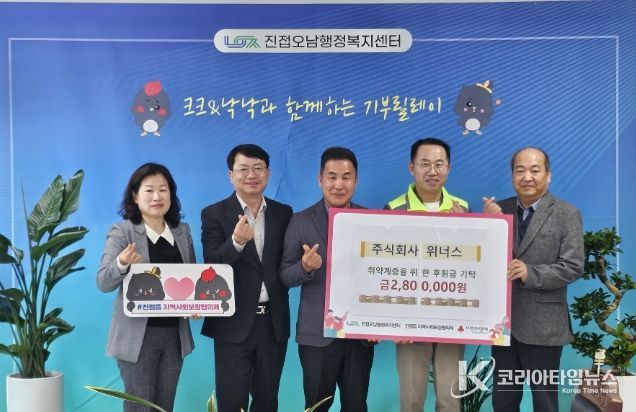 코리아타임뉴스 경기취재본부 | 남양주시는 24일 철마기업인회 소속 ㈜위너스(대표 김창성)가 진접오남행정복지센터에 지역 내 취약계층 지원을 위한 후원금 280만 원을 전달했다고 밝혔다.