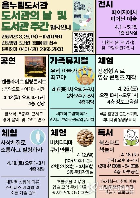 코리아타임뉴스 박찬식 기자 | 단양군이 ‘2026 도서관의 날·도서관 주간’을 맞아 다채로운 독서문화 행사를 운영한다.