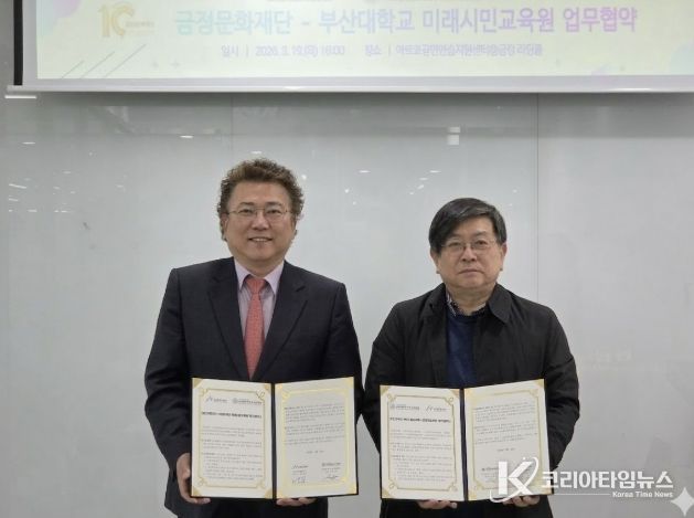 코리아타임뉴스 부산취재본부 | 재단법인 금정문화재단과 부산대학교 미래시민교육원은 지난 19일, 부산 지역의 문화·예술 및 평생교육 저변 확대를 위한 업무협약(MOU)을 체결했다고 밝혔다.
