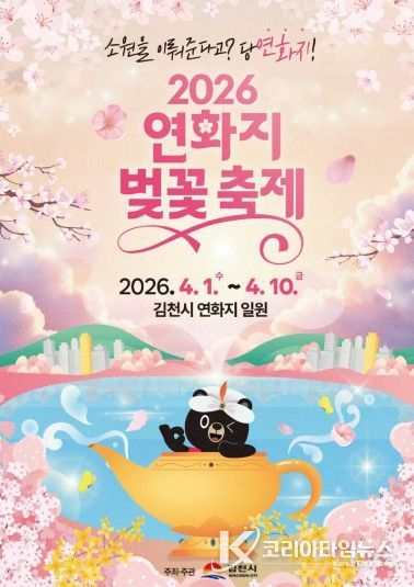 코리아타임뉴스 윤광희 기자 | 김천시는 4월 1일부터 4월 10일까지 10일간 '2026 연화지 벚꽃 축제'를 개최한다고 밝혔다.