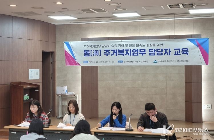 코리아타임뉴스 이아름 기자 | 인천 미추홀구 주거복지센터는 숭의보건지소 보건교육실에서 동 행정복지센터 주거복지 및 사례 관리 담당자 30명을 대상으로 ‘2026년 주거복지 업무 담당자 직무교육’을 진행했다고 25일 밝혔다.