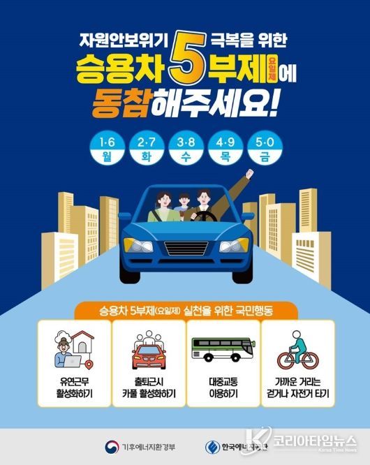 코리아타임뉴스 윤광희 기자 | ■ 자원안보위기 극복을 위한 승용차 5부제(요일제)에 동참해주세요!