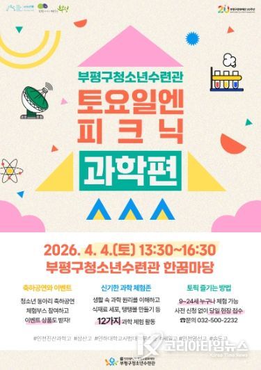 코리아타임뉴스 문화팀 | 부평구청소년수련관은 오는 4월 4일 오후 1시 30분, 수련관 한꿈마당에서 과학을 주제로 ‘2026 4월 토요일엔 피크닉’을 개최한다.