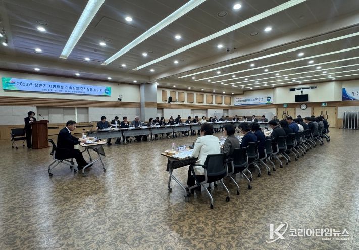 코리아타임뉴스 전남취재본부 | 여수시는 지난 23일 시청 회의실에서 정현구 여수시장 권한대행 주재로 ‘2026년 상반기 지방재정 신속집행 추진상황 보고회’를 열고, 부서별 주요 사업 추진 현황을 점검하고 재정 집행률 제고 방안을 논의했다.