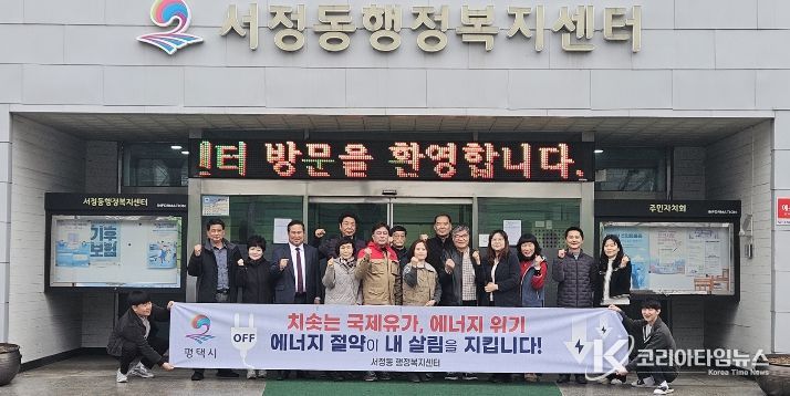 코리아타임뉴스 사회팀 | 평택시 서정동 행정복지센터는 지난 24일 서정동 9개단체협의회, 서정동 바르게살기위원회 회원, 행정복지센터 직원 등 약 20명이 참여해 최근 중동 지역 긴장 고조에 따른 에너지 수급 불안에 대비하여 에너지 절약 분위기 확산을 위한 에너지 절약 캠페인을 실시했다.
